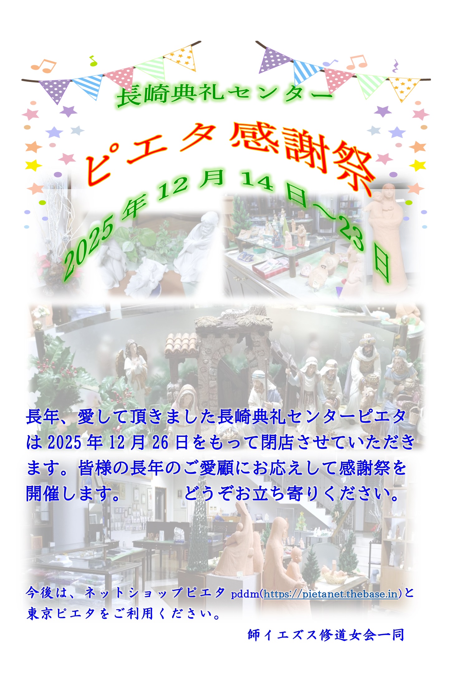 12月14日から長崎典礼センター「ピエタ」の感謝祭が開催中です。ぜひお立ち寄りください。